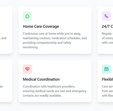 Whether you're planning a short getaway or an extended vacation, we provide comprehensive care support to ensure peace of mind for everyone.