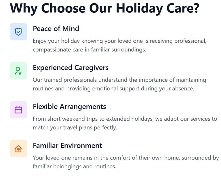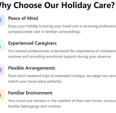 Contact us today to discuss your holiday care needs and ensure your loved one receives the best possible care while you're away.
